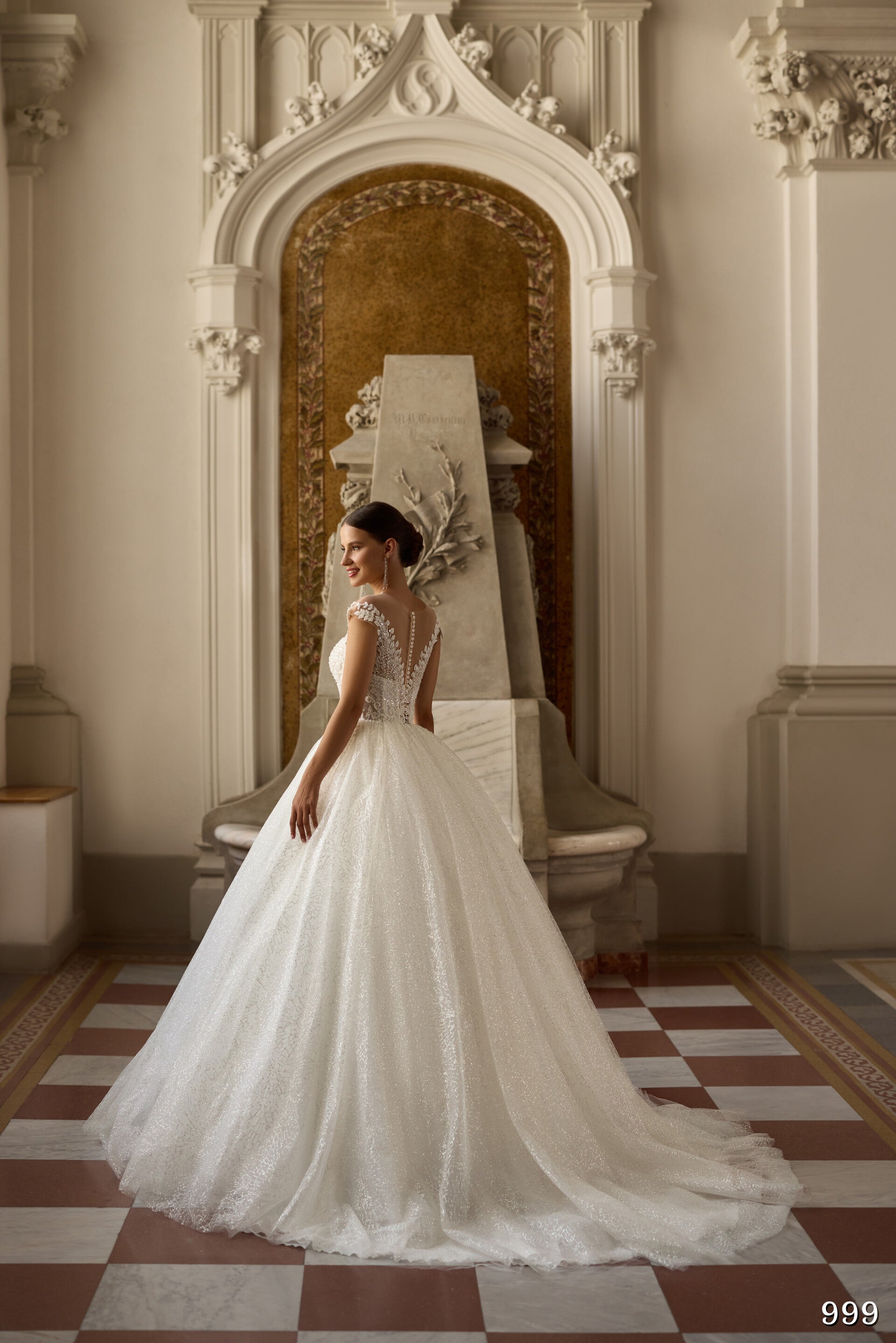 Cette magnifique robe de mariée princesse avec des empiècements en dentelle offre une apparence sensationnelle à toute mariée. Bien que la ligne de la robe soit classique, les matières spéciales, la dentelle fine et les accessoires font de ce modèle une exception.