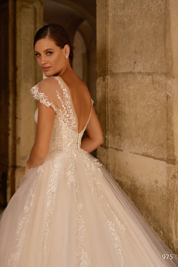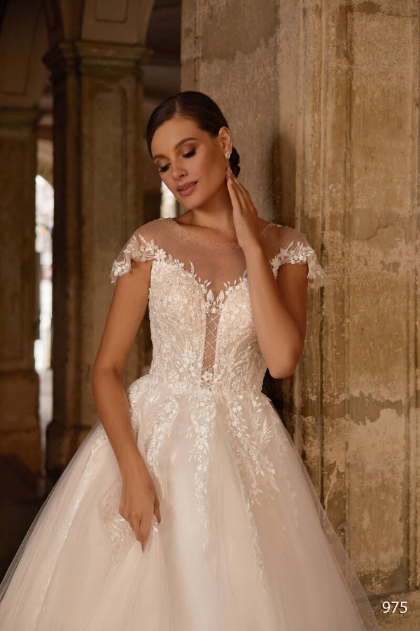 C'est une robe de style princesse, qui se rapproche d'un design spectaculaire, d'une esthétique originale, le résultat étant un modèle extrêmement élaboré, aux subtils accents couture.