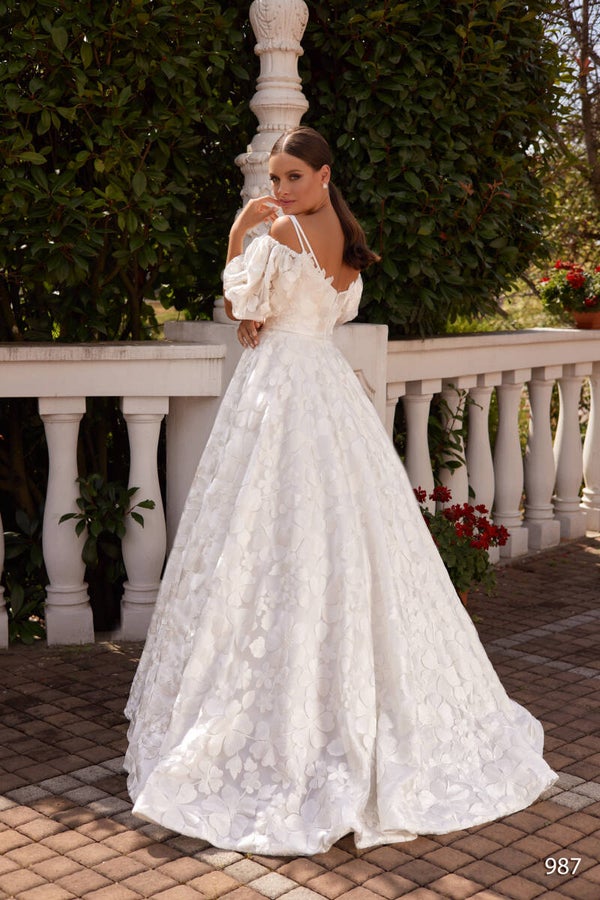 Cette robe de mariée moderne et élégante est parfaite pour les mariées stylées. Les détails en dentelle florale ajoutent une touche de romantisme à cette superbe robe.